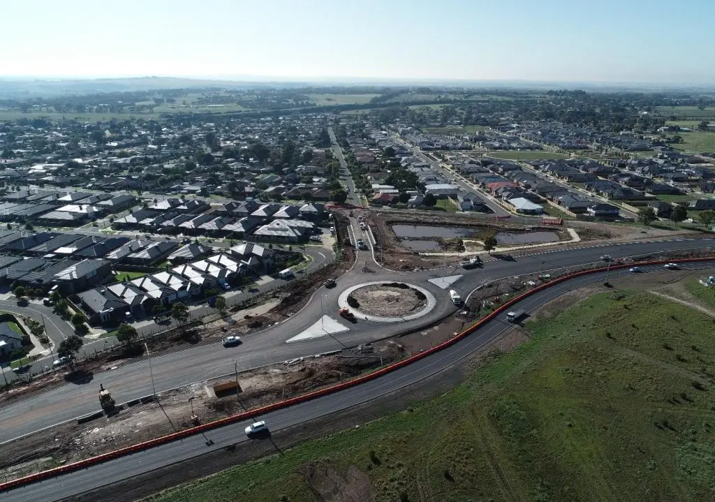 In addition to residential subdivision works, DCE is responsible for the design and delivery of key road infrastructure, including new traffic signals at Houdini Drive and Vineyard Road, road widening and a new roundabout at License Road and Vineyard Road, and the construction of a new roundabout at Diggers Rest-Coimadai Road.