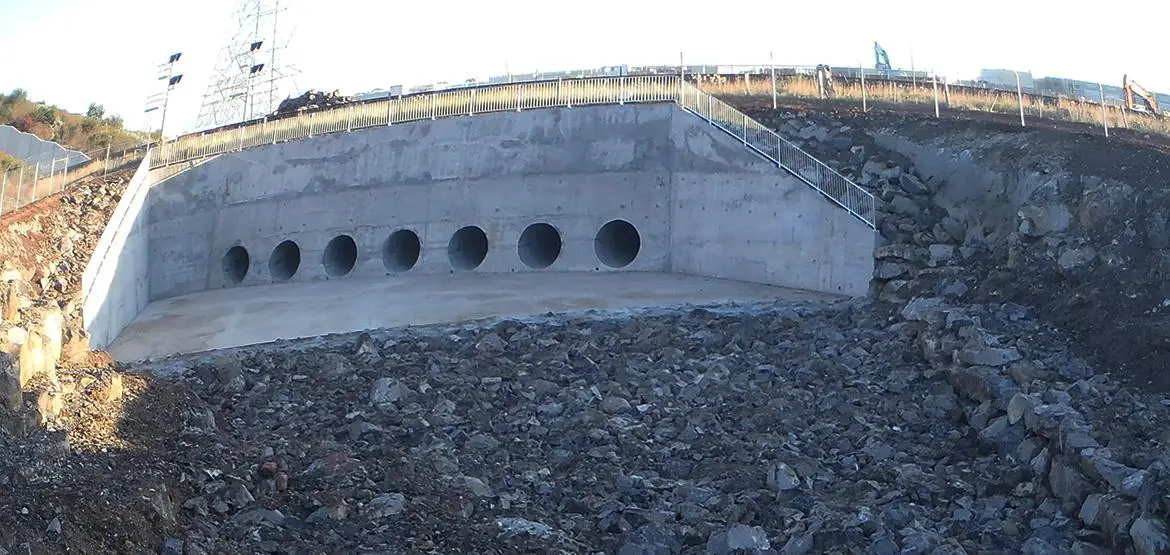 The 7 No 1650mm diameter culverts were constructed by microtunelling using state of the art tunnel boring machines in complex ground conditions. Each tunnel ‘drive’ took approximately two weeks to complete, and was required to be undertaken at night, outside of railway operating hours.